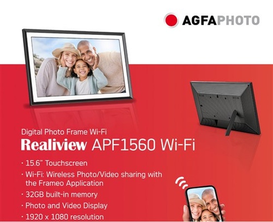 Agfaphoto Digitale WiFi fotolijst 15 inch Zwart Bestelbaar Log in om prijzen te bekijken Artikelnummer APF1560WIFI EAN 3760265543786 Merk Agfa Photo
