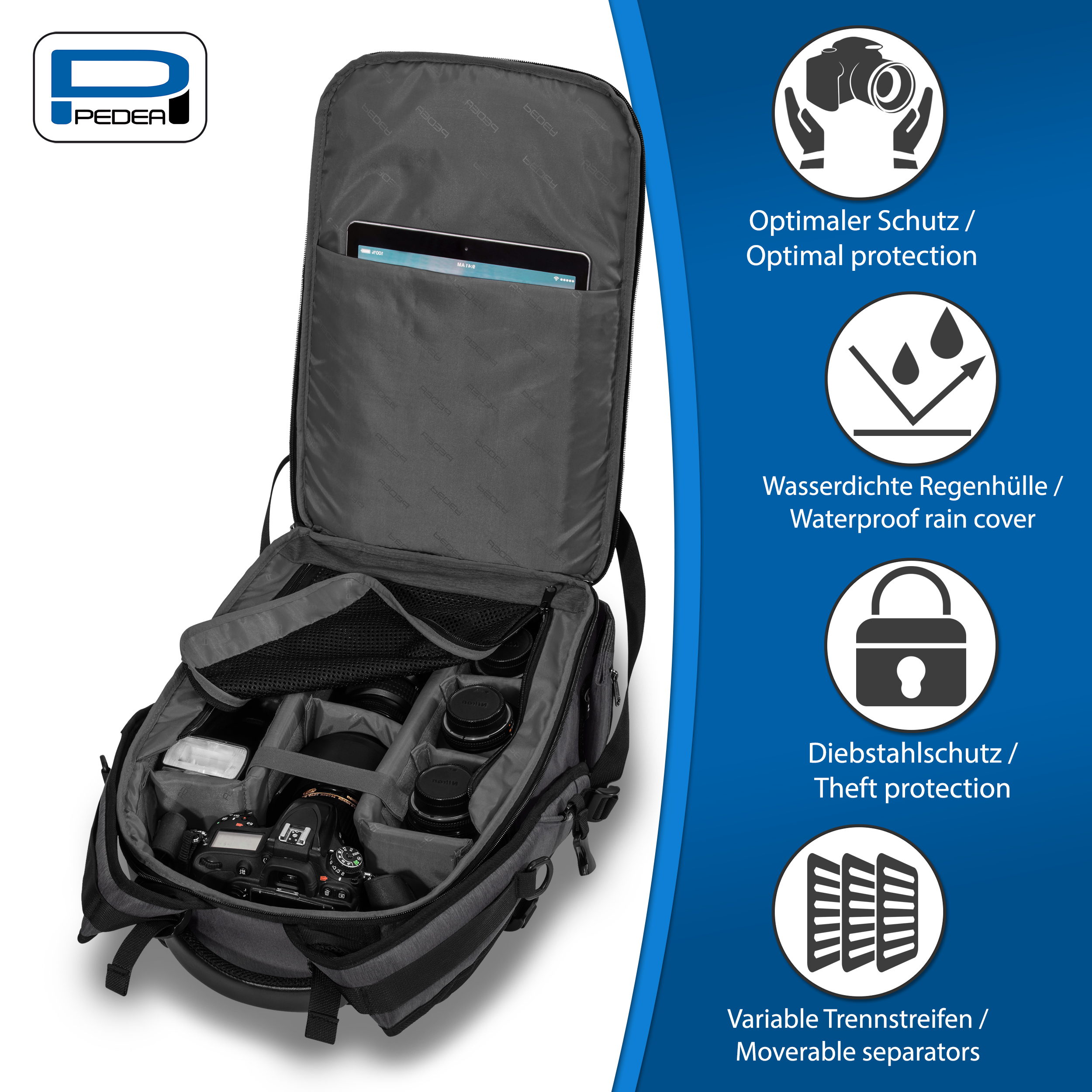 PEDEA Camera Rugzak NOBLE PRO, grijs 10 op voorraad Log in om prijzen te bekijken Artikelnummer PRO65065511 EAN 4048466962148 Merk PEDEA